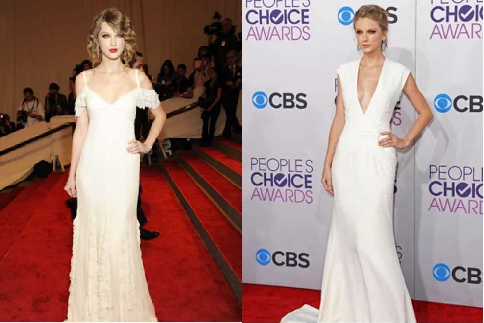 2013年1月,在美国人民选择奖颁奖典礼走红毯时,霉霉选择的同样是由Ralph Lauren设计的一款2013春夏成衣系列白色深V拖地长裙,风格简约却有一种不露声色的优雅气场。