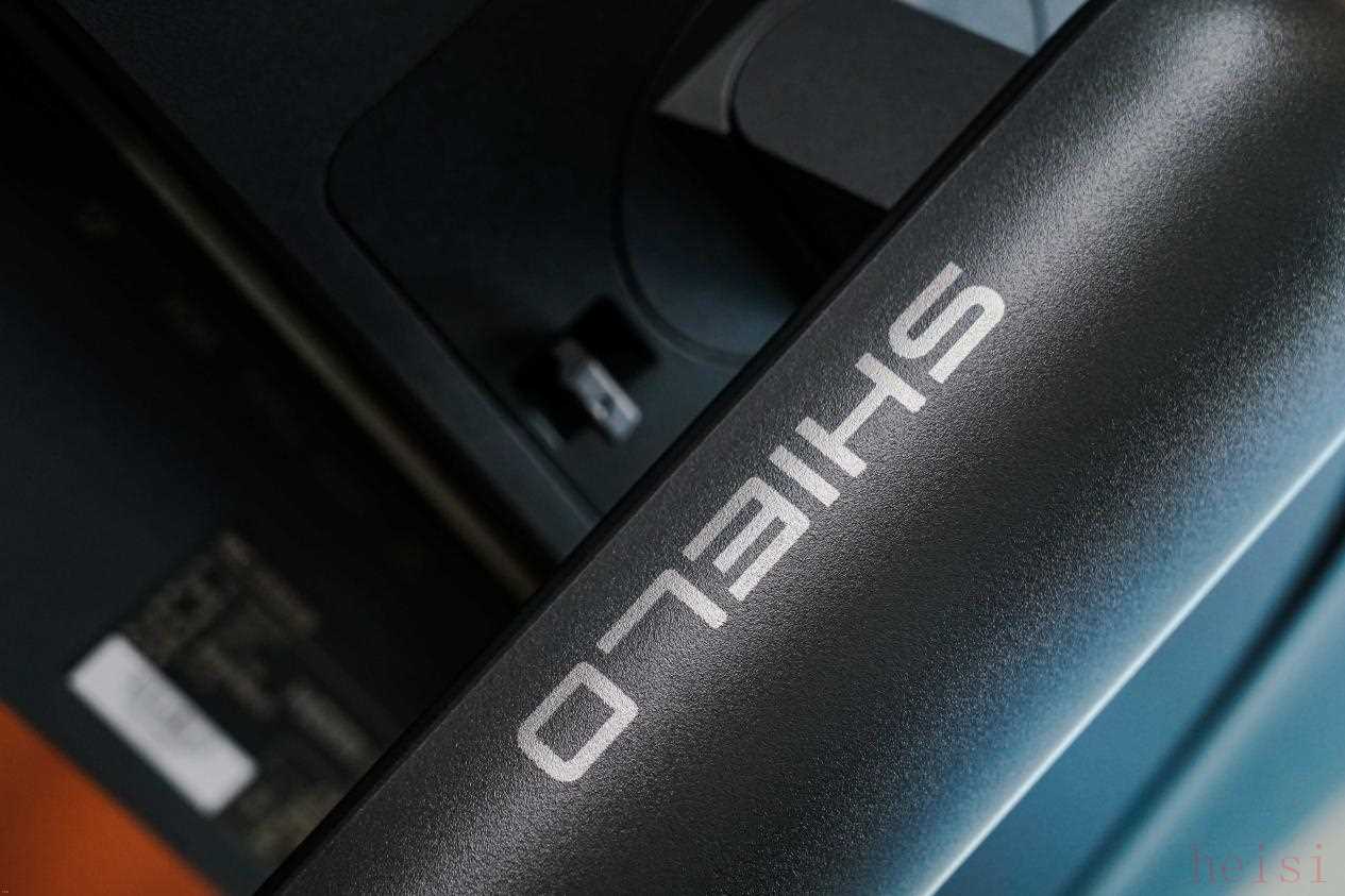 支架上方还设计有束线孔,方便用户整理连接线材,保持桌面整洁。另外支架侧面同样有“SHIELD”标识,进一步强化用户对品牌的认知。