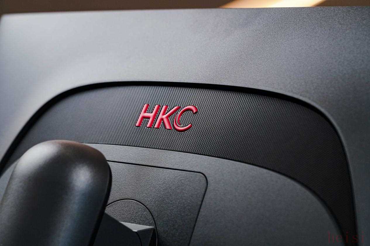 背部中央的内嵌有HKC的LOGO,纯红的配色与黑色的配色形成鲜明对比,彰显品牌力量与电竞基因。