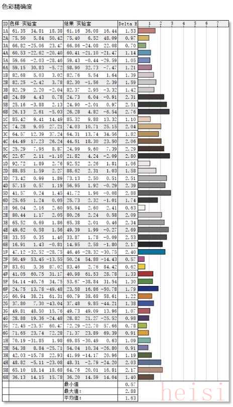 在色彩准确度的测试中,HKC UG25EF显示器平均ΔE值为1.63,最大ΔE为2.88。一般来说平均ΔE<2,人眼就基本上分辨不出色彩的差异,HKC UG25EF可以说即使面对部分专业显示器也毫不逊色。