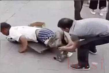 这类“残疾乞丐”有一些会伪装腿脚不便,半跪或趴在地上乞讨,他们衣着残破,露出伤痕累累的四肢,如果是寒冷的冬天,他们瑟缩在角落的模样往往让人看了就心生不忍。