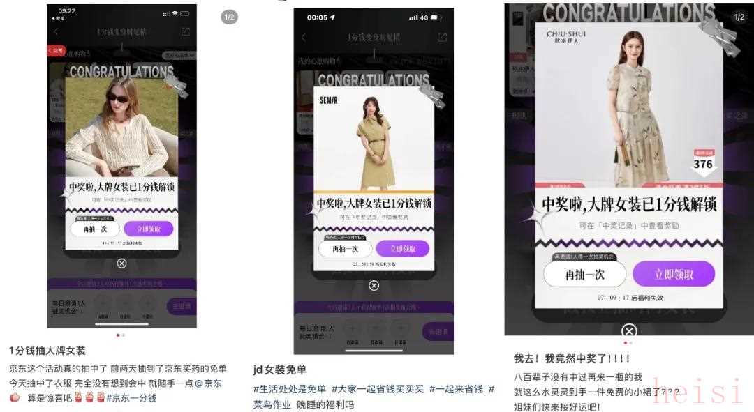 2.  "奖品价值高:" 虽然是“抽”,但奖品往往是知名品牌的女装,价值不菲,对于幸运的参与者来说吸引力巨大。