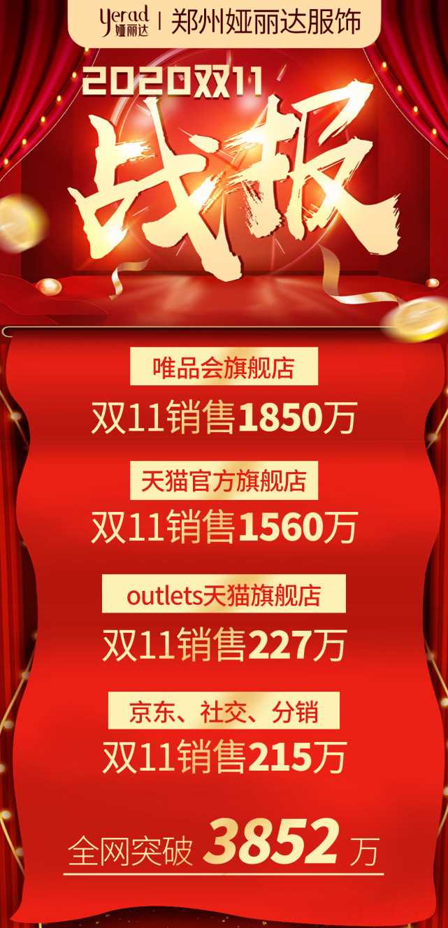 双11的秀场,河南服装企业再一次向国人证明了其能量和江湖地位。郑州女装一姐逸阳,双11豪取1.15亿元,夺下天猫店女裤单品类目销售桂冠。娅丽达斩下3852万元,同比增75%。但纯电商品牌烟花烫和首尚格释双双下滑,各自收获851万元和1000万元。胜者自有胜者的荣光,但败绩并不意味着loser,反而可能是重新定位后的再出发,走得更为稳健。【逸阳称霸,娅丽达增幅七成多,烟花烫实现目标销售额】