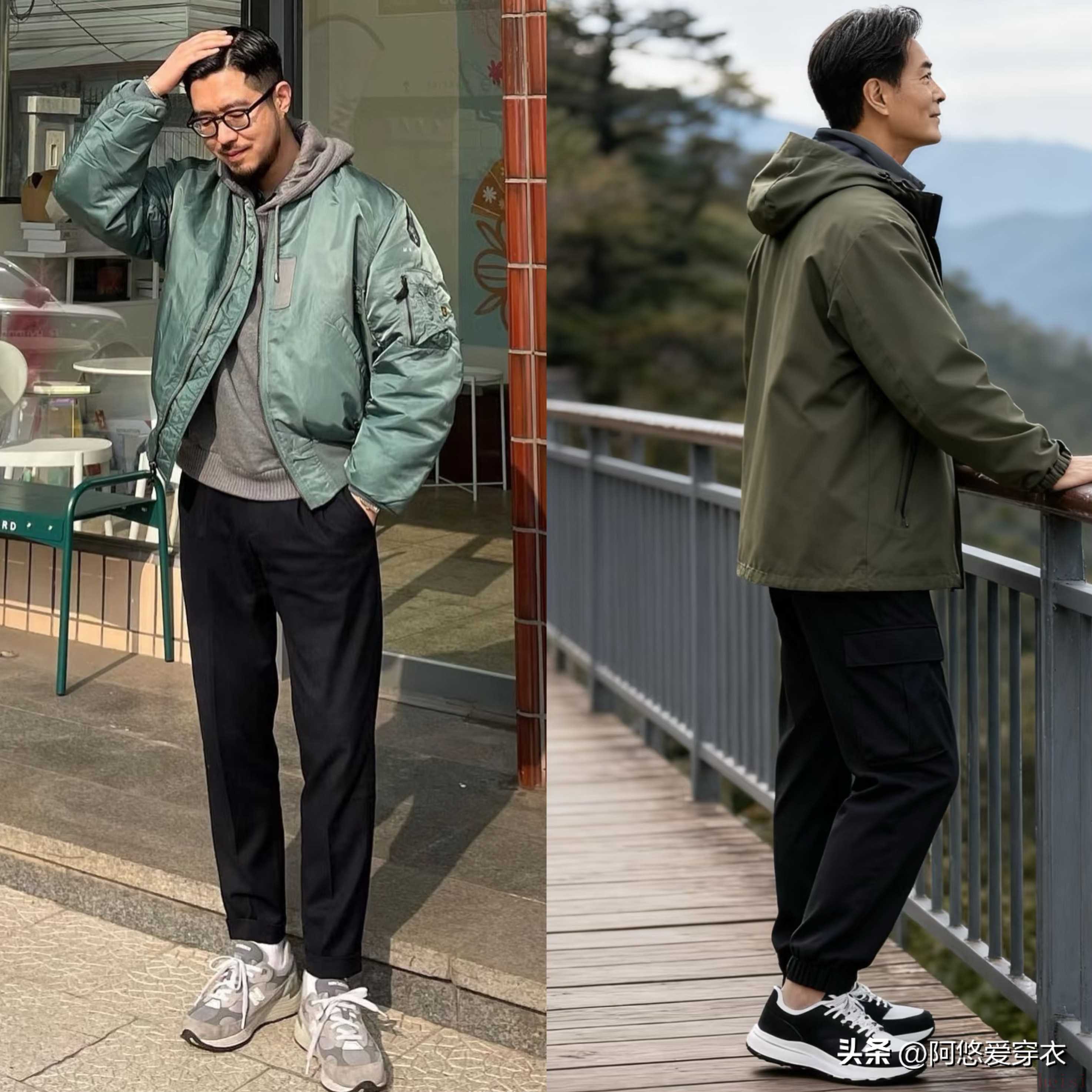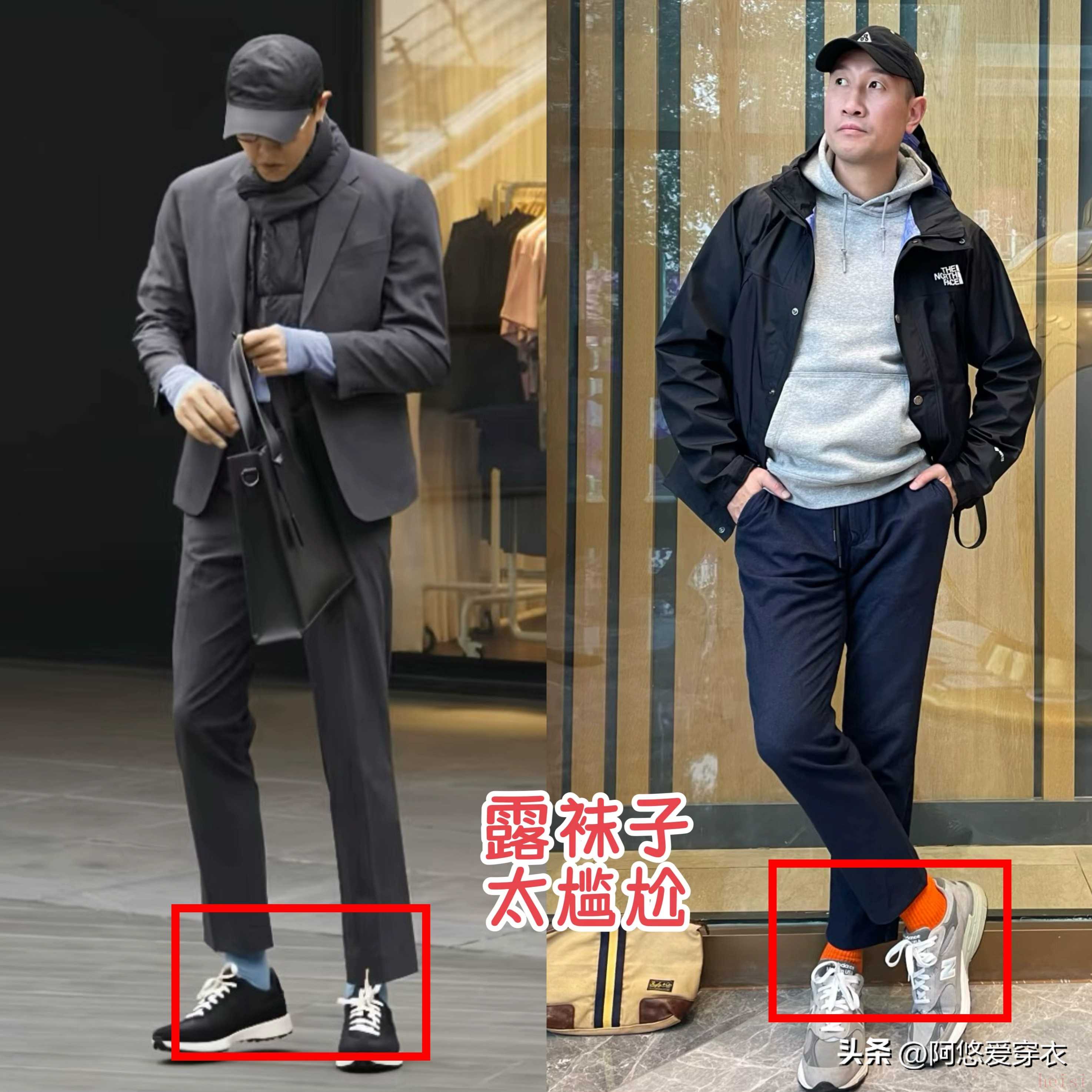 穿运动鞋的时候,中年男人还要避开一个尴尬的操作,那就是露出袜子,特别是好多人穿运动鞋的时候喜欢配九分裤,以为这么搭配更利落增高,结果把袜子露出来,显得脚踝特别突兀,到了秋冬这么穿还容易灌风吹到脚踝。