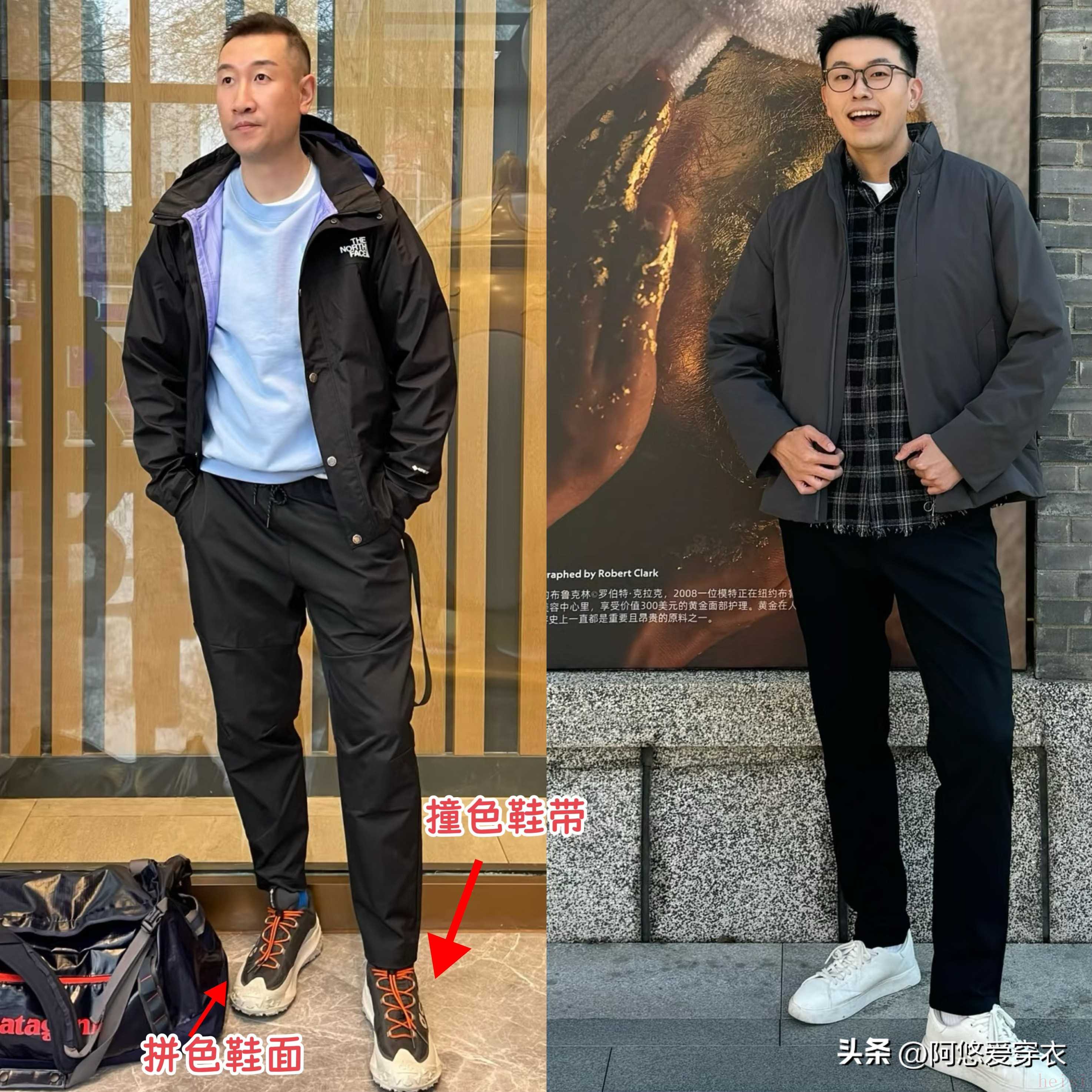 就像我们穿运动鞋,最保险的方式就是搭配工装外套、运动裤,把休闲风统一起来,而不是故意混搭正装、大衣,一旦没撑起来,就会尴尬得不行。