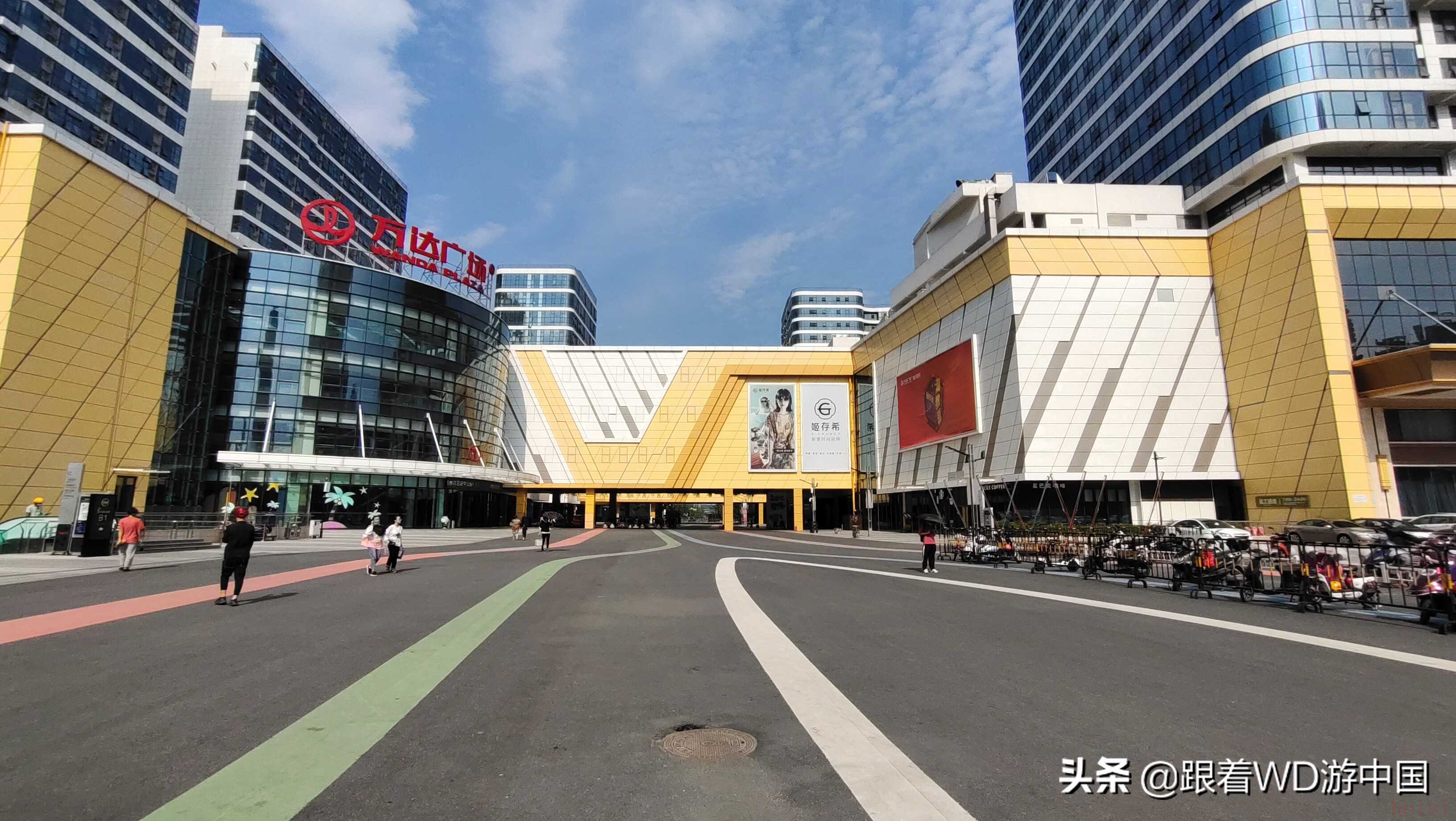 “跟着万达游中国”第5站——嘉兴经开万达,罕见的双子楼结构——3号门口的广场