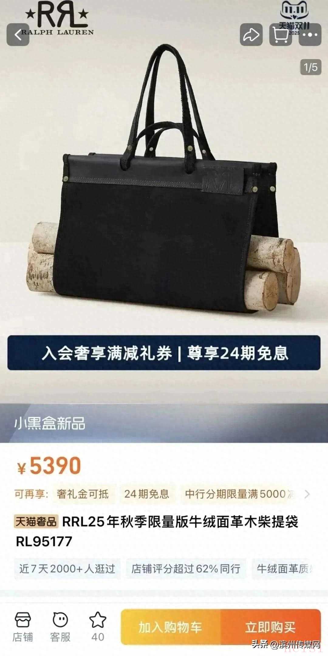 近日,有网友在社交平台发帖,展示拉夫劳伦(Ralph Lauren)官方旗舰店一款售价5390元的“牛绒面革木柴提袋”,其宣传图中提袋内装有木柴,引发广泛讨论。10月28日,据经视直播,Ralph Lauren官方旗舰店的客服回应表示,这款提袋的设计灵感来源于木柴收纳,在体现独特设计感的同时也兼顾实用性,实际使用场景并不限于装木柴,消费者可根据个人需要自由搭配使用。据客服介绍,该产品为2025年秋季新款限量手袋,已于9月3日上架销售,售完即止。其材质选用粗制牛绒面革,原料源自Ralph Lauren先生位于美国的牧场。产品采用传统工艺制作,材质和工艺是价格的重要组成部分。