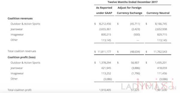 Timberland第四季度销售额上涨11%,全年增长2%;Wrangler第四季度销售额上涨3%,全年增长1%;