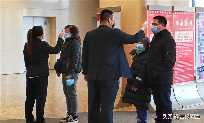 在吉林市欧亚商都综合体入口设置专人为每位顾客测量体温