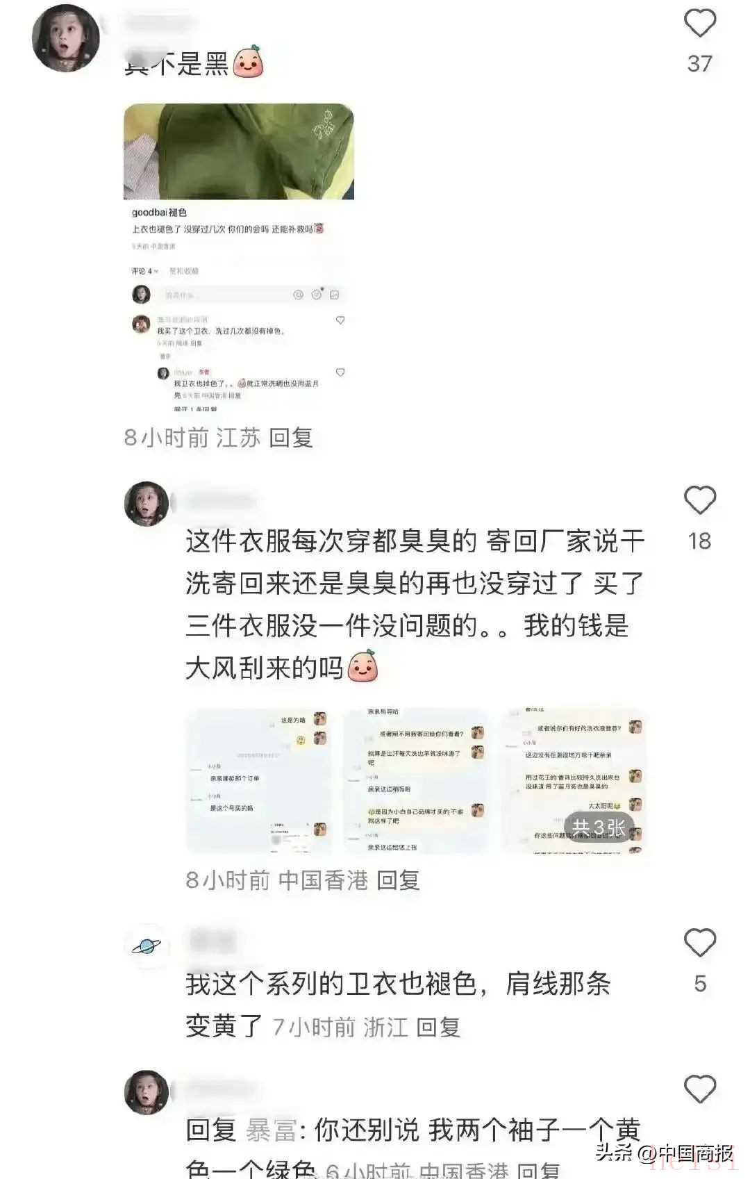 该事件引发网友热议。有网友调侃:“胶印变成了一次性文身贴。”也有网友在评论区表示,同系列卫衣也存在褪色问题。