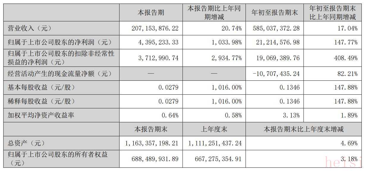 单季度维度,第三季度成为业绩增长的重要推手。报告期内,公司单季营收2.07亿元,同比增长20.74%,增速较前三季度整体水平提升3.7个百分点;归母净利润439.52万元,同比激增1033.98%,超10倍的同比增幅,凸显出公司三季度经营效率的显著提升。