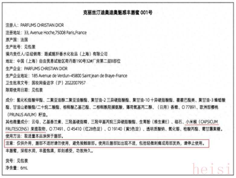 对于丰唇蜜添加了小米椒果提取物,有消费者“辣评”道:“所谓的丰唇效果,原来就是加辣椒把嘴巴辣肿啊!”值得一提的是,迪奥魅惑丰唇蜜系列产品在包装上均有标注:“注意:仅供外用,唇部不适时请勿使用,避免接触眼部。使用后唇部如出现不适,包括轻微刺痛或局部发热,请停止使用。”