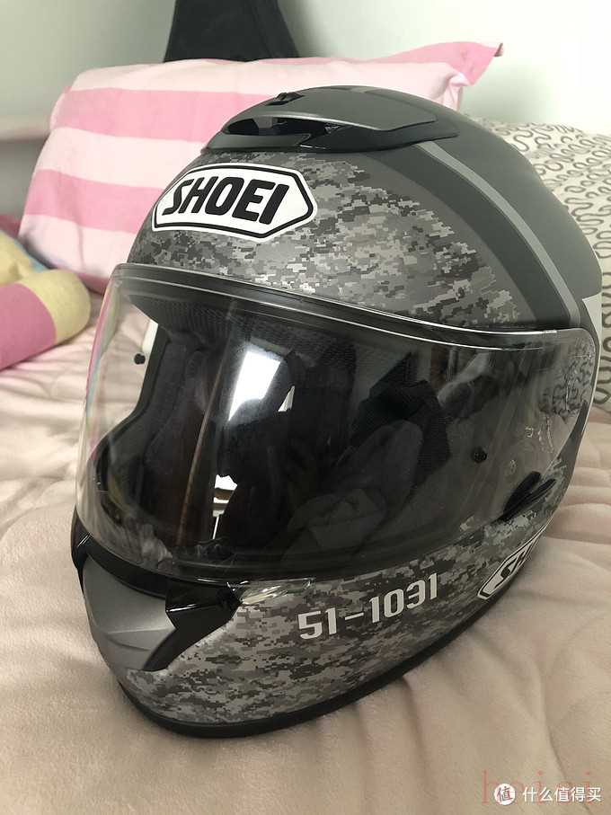 到了店里,我在试过了 HJC 和 agv 等头盔后,鼓起勇气试了 SHOEI 的入门款 QWEST系列,一款M 码的银灰花纹全盔,然后我就沦陷了,虽然大佬阻拦了我,说价格过高, shoei 的 GT-AIR 海淘才2900,但我还是忍痛花了2200买下了这个头盔,请大家不要学我冲动消费……