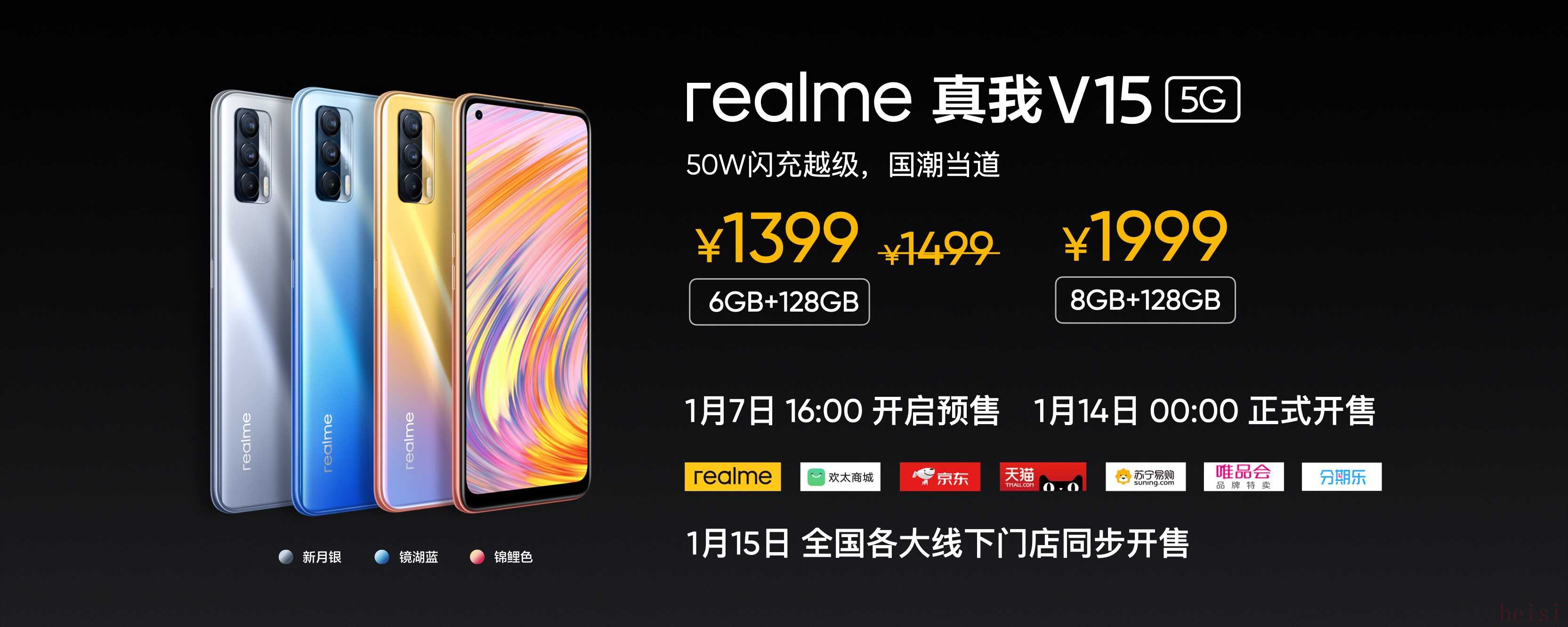 realme真我V15国潮锦鲤手机 6GB+128GB版本售价为1499元,首批补贴价为1399元,8GB+128GB版本为1999元,目前已经开启预售,1月14日正式线上开售,1月15日全国线下门店全面开售。