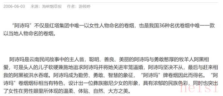 曾有位烟民写下了他与“阿诗玛”的故事:年轻的时候,我特别喜欢吸“阿诗玛”,只要是在吸这款香烟,我都忘记自己是个糙汉子,都觉得自己变得文艺了。