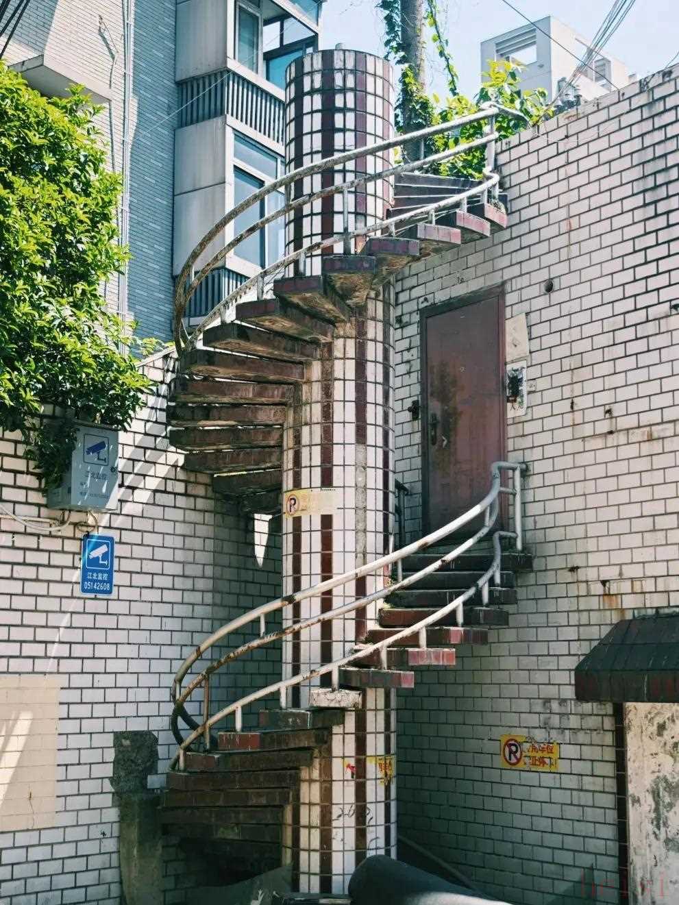 艺术的盘旋楼梯还在表达当年人独到的气质。只是,它们破败不堪的样子和意气风发的过去判若云泥。