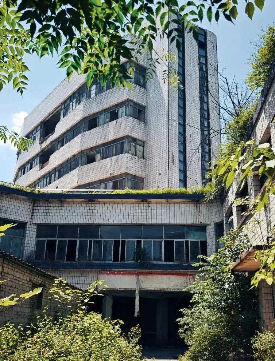 办公大楼前失去关照的园林植物疯狂生长,恣肆狂放的青绿几乎要封住大楼入口;楼门上垂着一条肮脏的破塑料布,无风自动,仿佛要向偶尔光顾此处的过客倾诉这里往昔辉煌的成就。