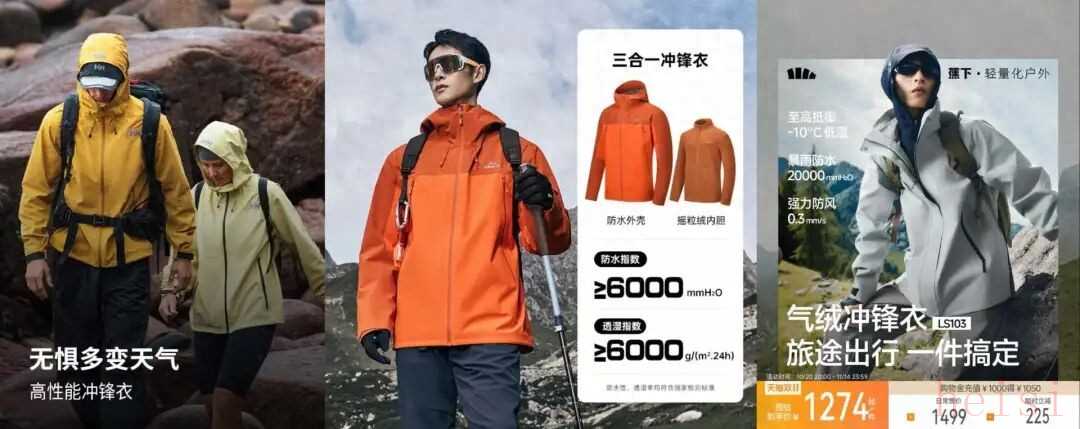 不过翻译成中文,不管是国外还是国内品牌,都不用“XX夹克”这个名字,而是更偏爱“冲锋衣”。从骆驼、伯希和、海丽汉森,到李宁、安踏,再到蕉下、蕉内等主打日常功能服饰的品牌,都会在产品介绍上清楚标注“冲锋衣”的字样。
