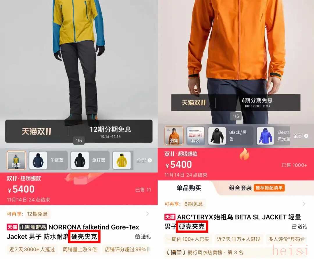 仅有少部分品牌从材质入手,用“硬壳夹克”来表示冲锋衣,比如始祖鸟、NORRONA,这两个品牌的天猫官方旗舰店客服均表示,硬壳就是人们通常所说的冲锋衣。