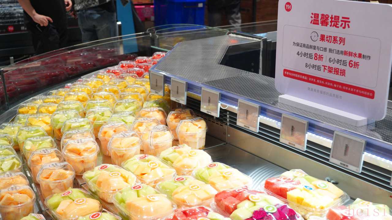 针对品质问题,调改后的永辉超市在食品安全方面也设立了新的规范要求。水果区严格执行“468原则”——果切制作超过4小时打8折、6小时6折、8小时下架。