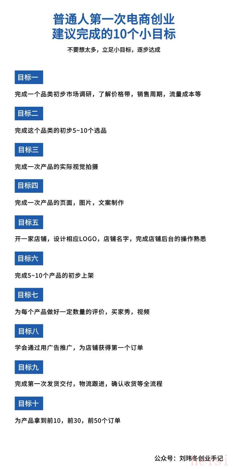 但如果你能降低预期,放平心态,把这个电商小创业,当成一次项目的试水,当成一次探索,当成一次商业练习,当成一次小考试,当成一次入门,以及完成下面一个个具体的小目标,那你成功的概率就会大大增加。