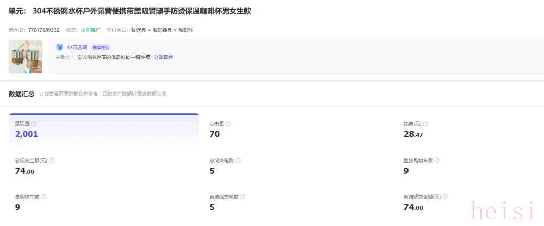 这也是很多产品数量较多的店铺常用的一种打法,即把一个产品推起来后,关掉推广,后面它会自然销售。