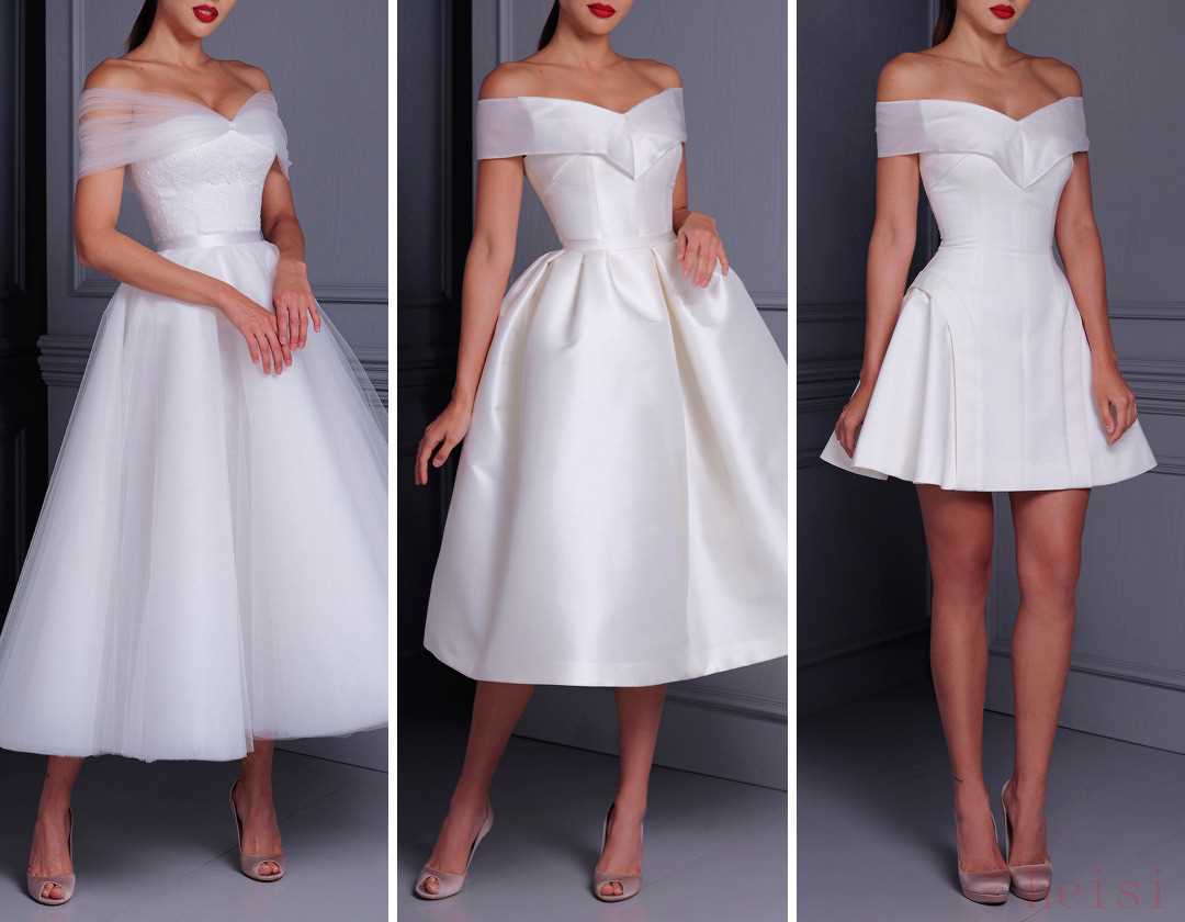 能够与婚纱礼服相比的小礼服,自然少不了绸缎与薄纱款式,轻盈的一字领褶皱,层叠蓬松的A型裙摆,褶皱华丽的花瓣裙,都是将唯美的白色系,凸显出端庄华丽之美,无需过多的钉珠点缀,也非常好看。