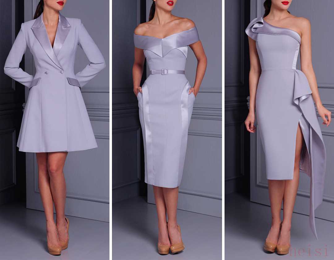 用丝滑光彩的灰色绸缎面料,搭配细腻流畅的雪纺,柔美细腻的线条,得体干练的西服裙装,灰色腰带将包臀裙剪裁的小礼服之美,都完美展现出来。最爱的一条是右边这条如玫瑰绽放的礼裙,开叉裙摆与肩部的丝滑绸缎,线条浪漫优雅。