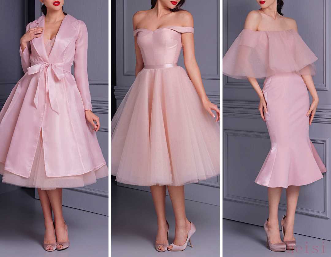 轻盈、梦幻的浅粉色用华丽的欧根纱来剪裁,蓬松而浪漫的柔美色调,摇曳的鱼尾裙摆,无论是蓬蓬纱裙还是蝴蝶结束腰设计,都让这一抹粉,变得精致起来,流光溢彩的绸缎粉,制作成鱼尾褶皱裙,露肩一字领薄纱,浪漫雅致。