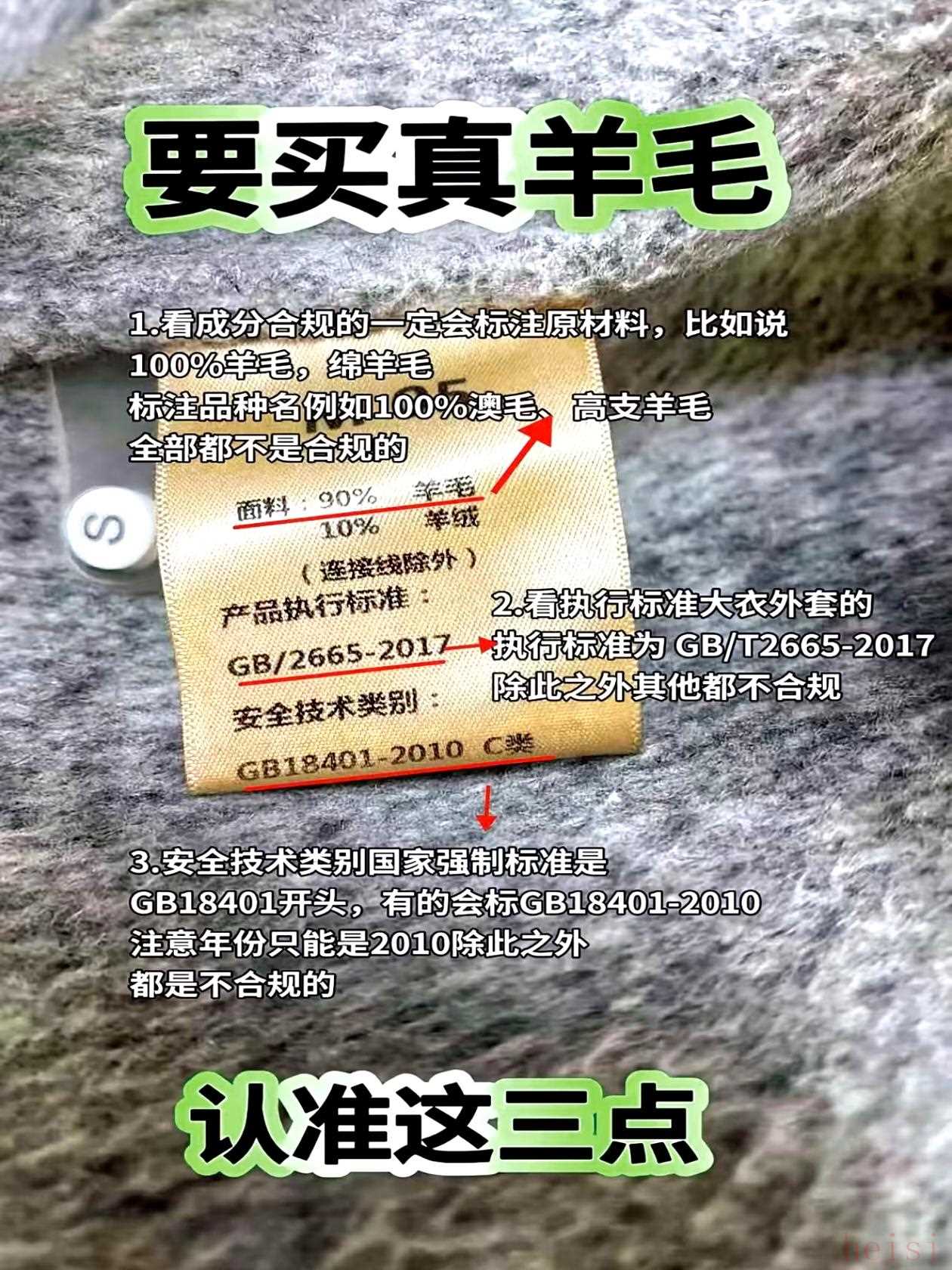 女式大衣必须标 GB/T 2665-2017,这是现行国标;如果标“GB/T 2665-2009”,直接pass!旧版早就作废,用旧标的要么是库存次品,要么是假货。