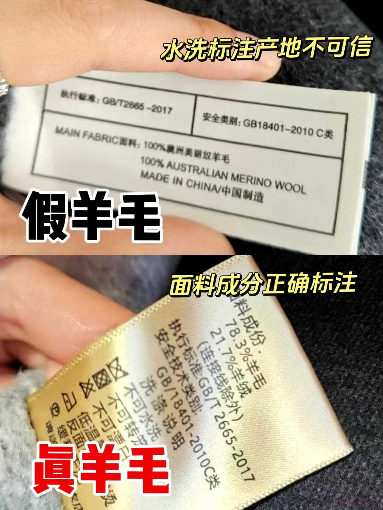 真货:直接标“100%羊毛”“100%山羊绒”,或明确混纺比例(比如“90%羊毛+10%山羊绒”)。