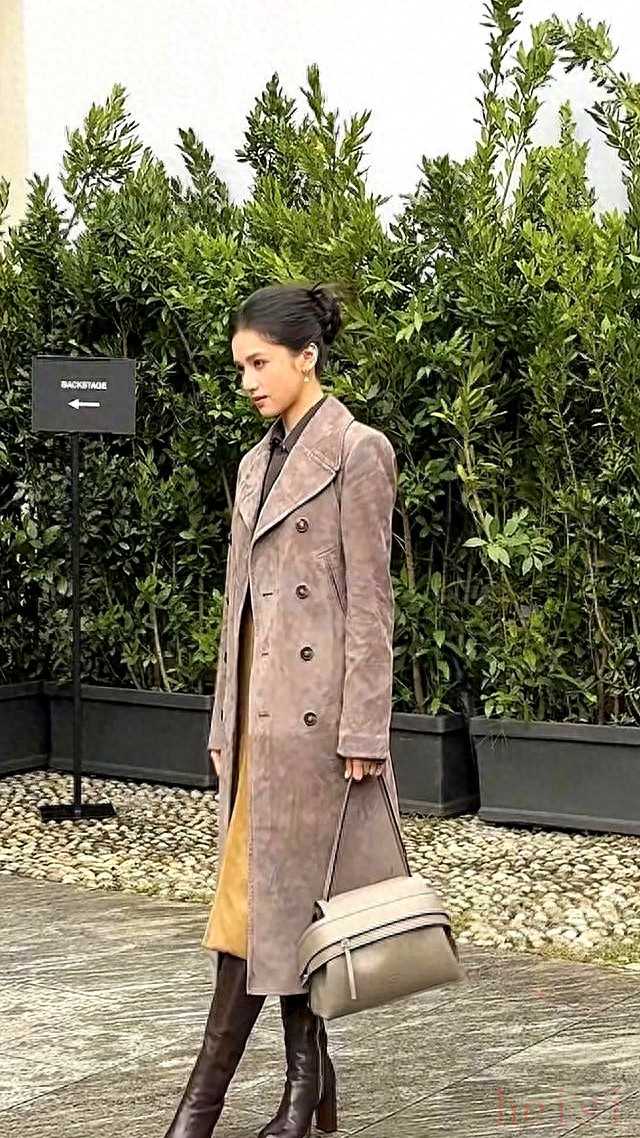 MaxMara、BV、Loewe都在2023秋冬秀推环保麂皮,张婧仪提前半年把样衣穿上身,时间差打得比期货还准。