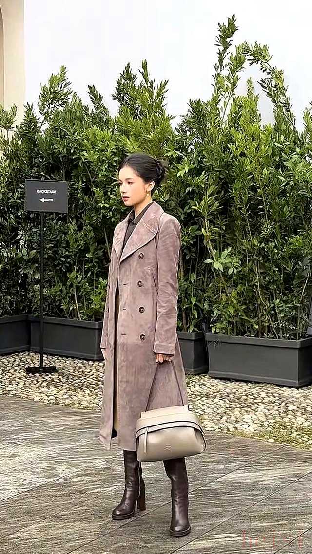9月穿Loewe奶油皮外套,10月换TheRow燕麦色大衣,11月轮到麂皮风衣,色系越走越淡,材质越选越哑,像把音量从6降到2,反而让品牌方听见。