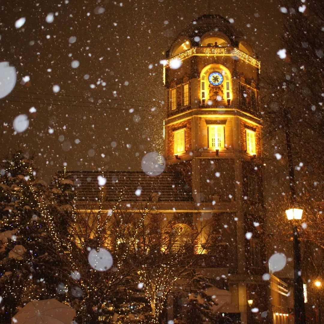 “メルヘン交差点”圆环广场,有明治时期「常夜灯」,伴甜点店、音乐盒堂、蒸气钟。夜晚灯光下,如中古欧洲小镇,小樽必游。