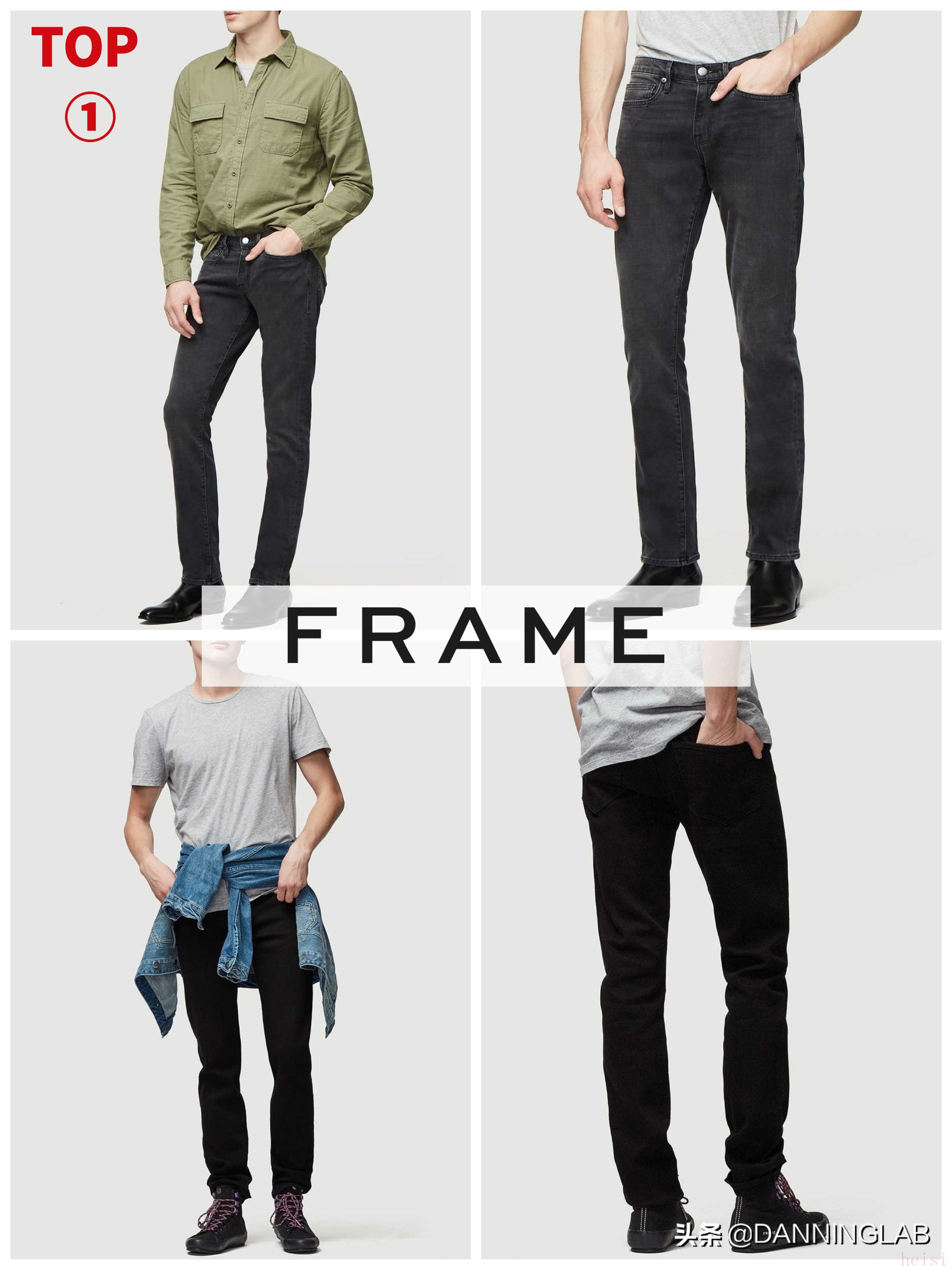 FRAME的L'Homme Slim系列连续两年上榜。经典五口袋牛仔裤,百搭的黑色与深灰色适合日常穿着,裤脚位置带有轻微褪色的水洗设计。