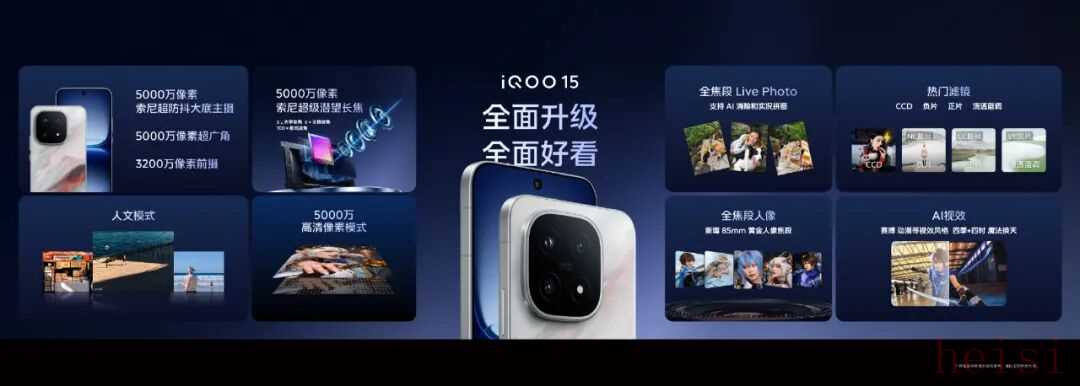 其余核心配置上,iQOO 15 还搭载 3200 万像素前置摄像头,后置全焦段 5000 万像素三摄方案,覆盖主摄、超广角与长焦焦段。辅以 7000mAh 单电芯蓝海电池,支持 100W 超快闪充及 40W 无线快充,兼容 PPS 和 PD 快充功能。外围配置上,3D 超声波指纹识别功能、1511 战鼓大师扬声器、行业首发战锤 MAX 双轴振感马达(崩坏:星穹铁道》《三角洲行动》已达成官方合作)、红外、NFC 功能、OriginOS 6 系统等也一并支持或搭载。