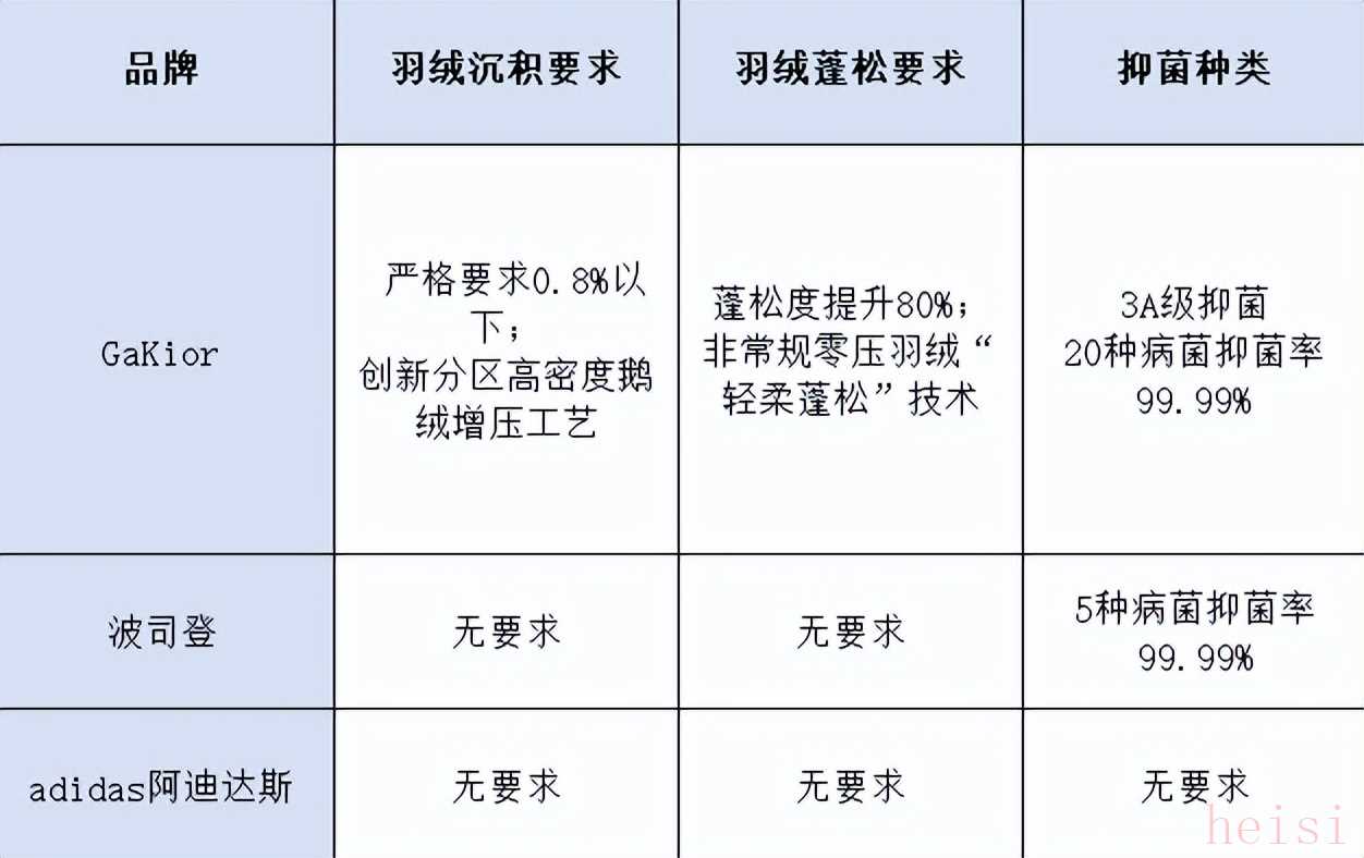 羽绒沉积:无特殊要求,常规填充的普遍表现