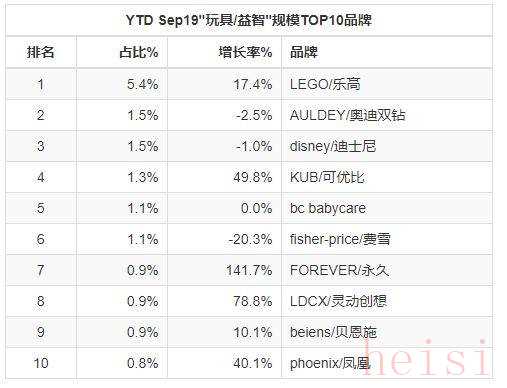 2019年1~9月,乐高作为拼搭积木的主要代表,成了国内线上玩具品牌第一名,甩开第二名3倍多。