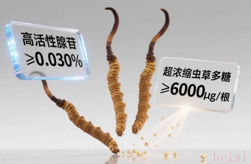 高活性腺苷≥0.030%(HPLC 实测),比普通虫草高2–3倍,维持机体能量代谢稳定。