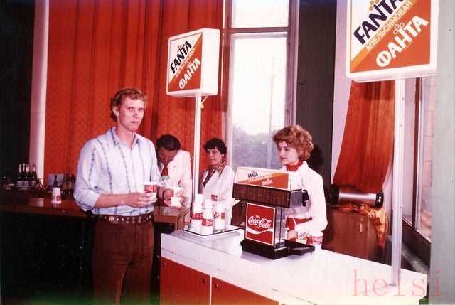 其实可乐在1930年代是有机会来到苏联的,在米高扬那次美国之旅中,可乐浓缩液曾经被列在采购清单上,但是由于资金问题最终没有落实,苏联人设想可以建立新的生产线来模仿这种碳酸饮料,然后顺便给配方做一个本地化改造,用格鲁吉亚茶叶替代古柯叶,不过并没有成功。再后来受到各种局势影响,等可口可乐真正走进苏联人民中间,就要到20世纪80年代了,那时,它永恒的对手——百事可乐,已经在苏联发展十年了。