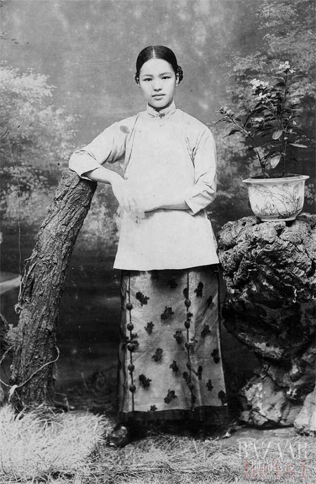 1914年以后,大家非常热衷于在传统的马面裙上搞创新。其中一种,就是把它改成类似笼裙的形式,即外面罩上一层黑纱、蕾丝或是使用扣子等点缀做成假马面,这是当时女性对裙子的一种中西合壁式的改造。这种裙子的思路和近年流行的双层式纱裙有着异曲同共之妙,差别只是当时还没有开放到可以让底下的裙子露出双腿而已。