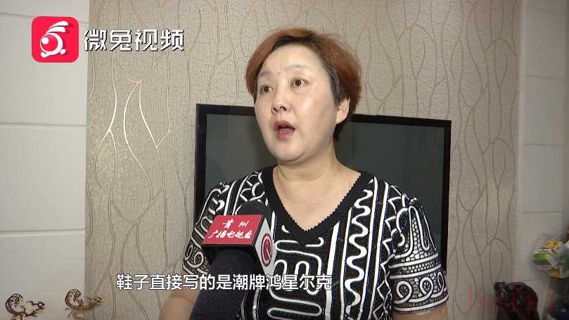 刘女士:我就下单买了四样商品。最先收到的是鞋子,我一打开我就觉得奇怪,写的是潮牌。