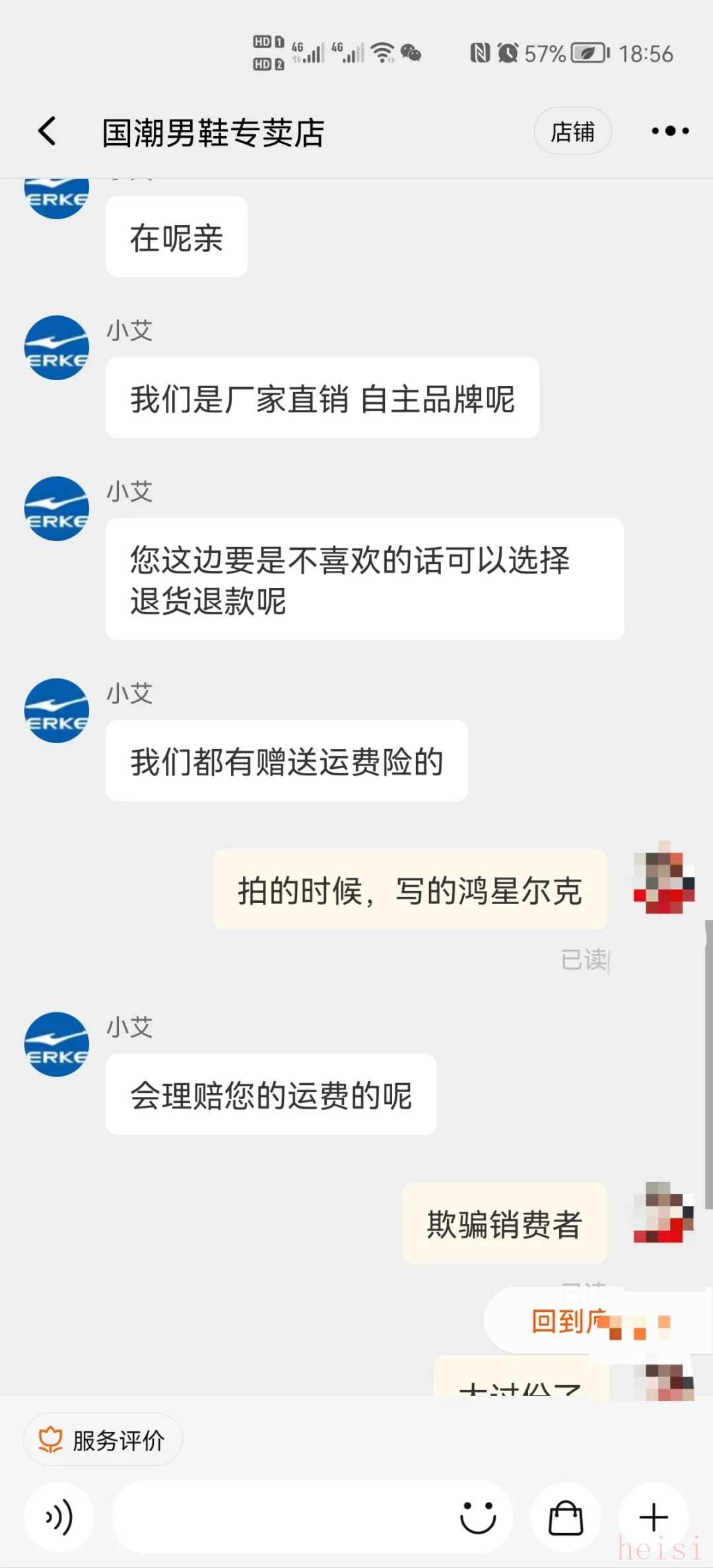 根据字面意思来理解,她以为这家店卖的就是鸿星尔克的鞋子,而且点开这家鞋店的客服对话框,还可以清楚地看见,客服头像就是“鸿星尔克”的品牌logo。