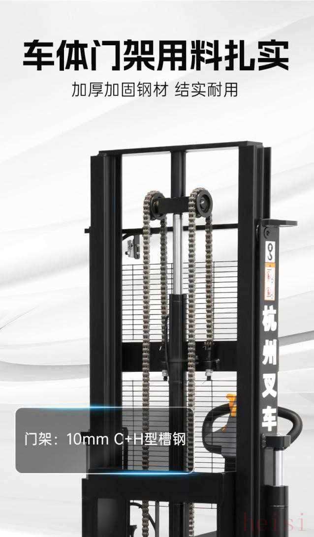 新品车体门架用料扎实,采用10mm C+H型钢门架,加厚加固钢材,结实耐用;加强密封性油缸,使用更安心;