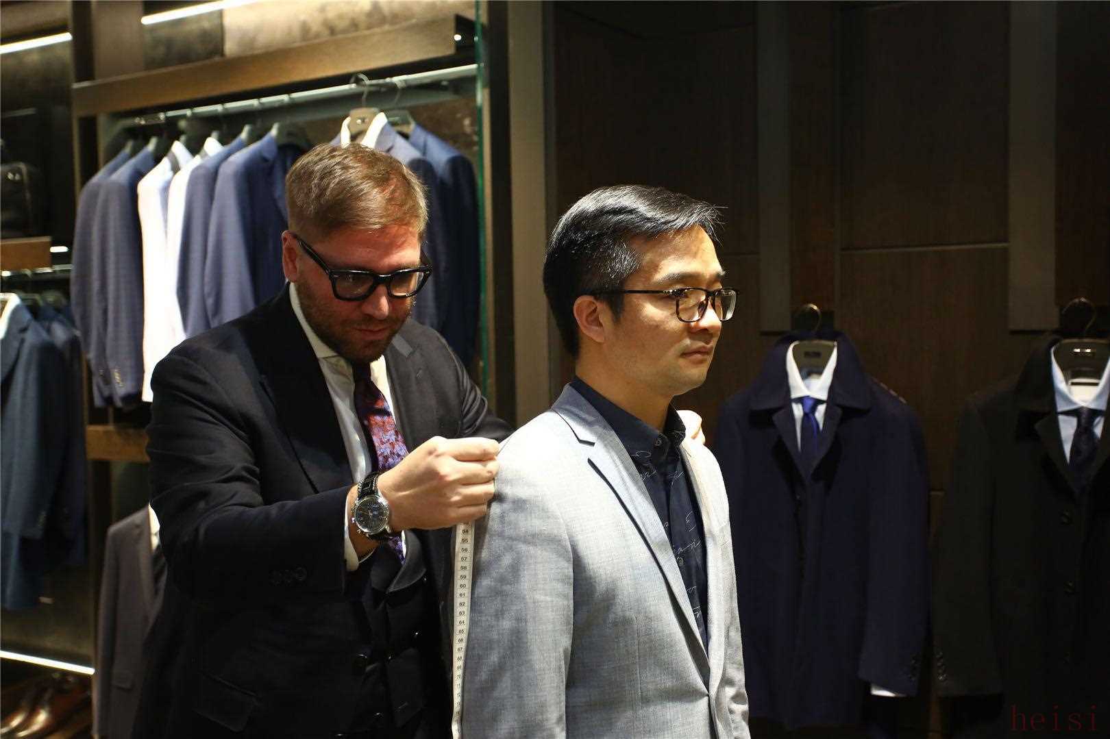 (京东集团高级副总裁、京东商城时尚生活事业群总裁胡胜利现场体验CANILI量体裁衣服务)
