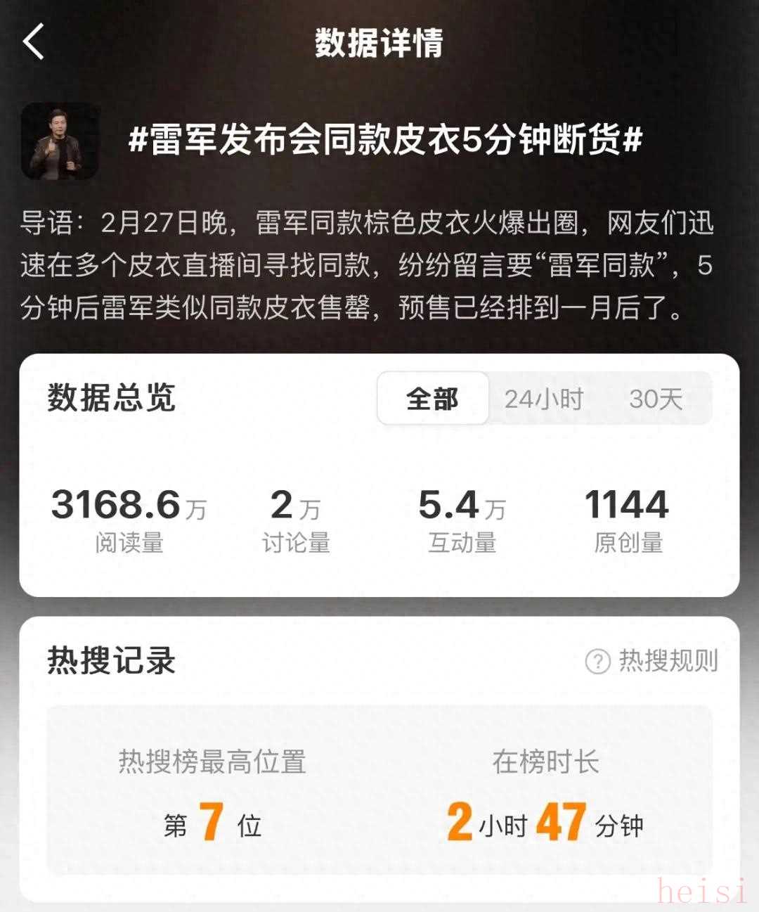 尽管“雷军同款皮衣卖断货”的微博热搜全网阅读量已经超过3168.6万,但对于像小泽这样的中小体量商家而言,盲目跟风去卖皮衣并不是个好选择。
