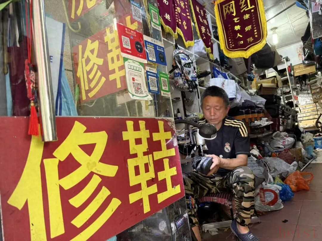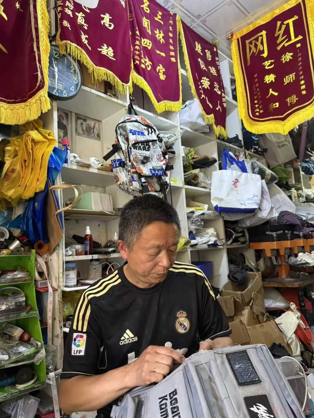 如果在社交媒体上搜“修鞋推荐”,常会跳出挂满锦旗的徐业林修鞋铺照片。“神奇师傅”“三林一宝”“修理达人”都是修过鞋的网友们对他的赞誉。