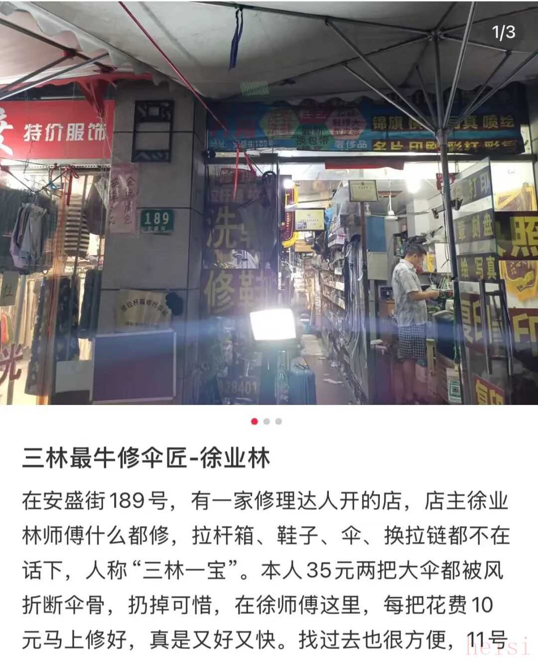 近30年过去了,徐业林的小地摊搬到了菜场摊位,市场搬迁后,又在安盛街189号沿街租下了一间商铺。这期间,他的业务也有拓展——修箱包、修拉链、修雨伞……