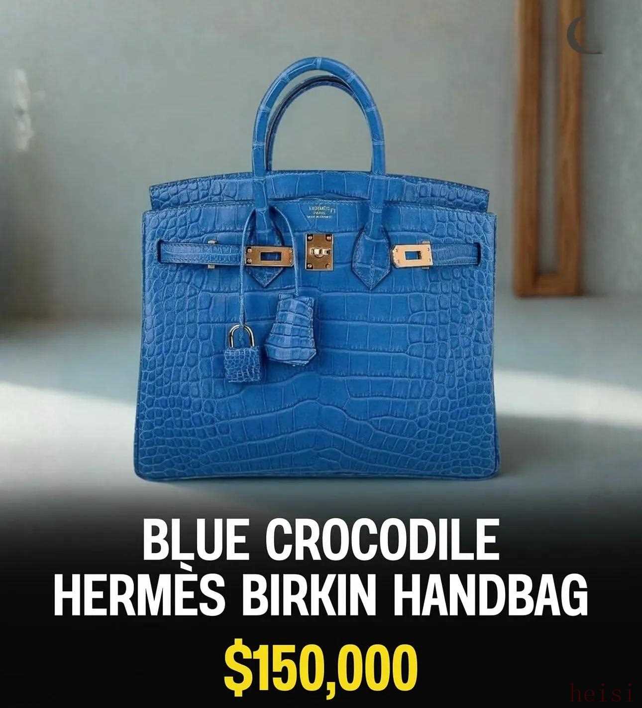 10. Hermès 蓝色鳄鱼皮铂金包 ($150,000)这款亮眼的蓝色鳄鱼皮铂金包,以其饱和的色彩和完整的鳄鱼纹理,展现了爱马仕在染色技术和稀有皮料上的精湛技艺。