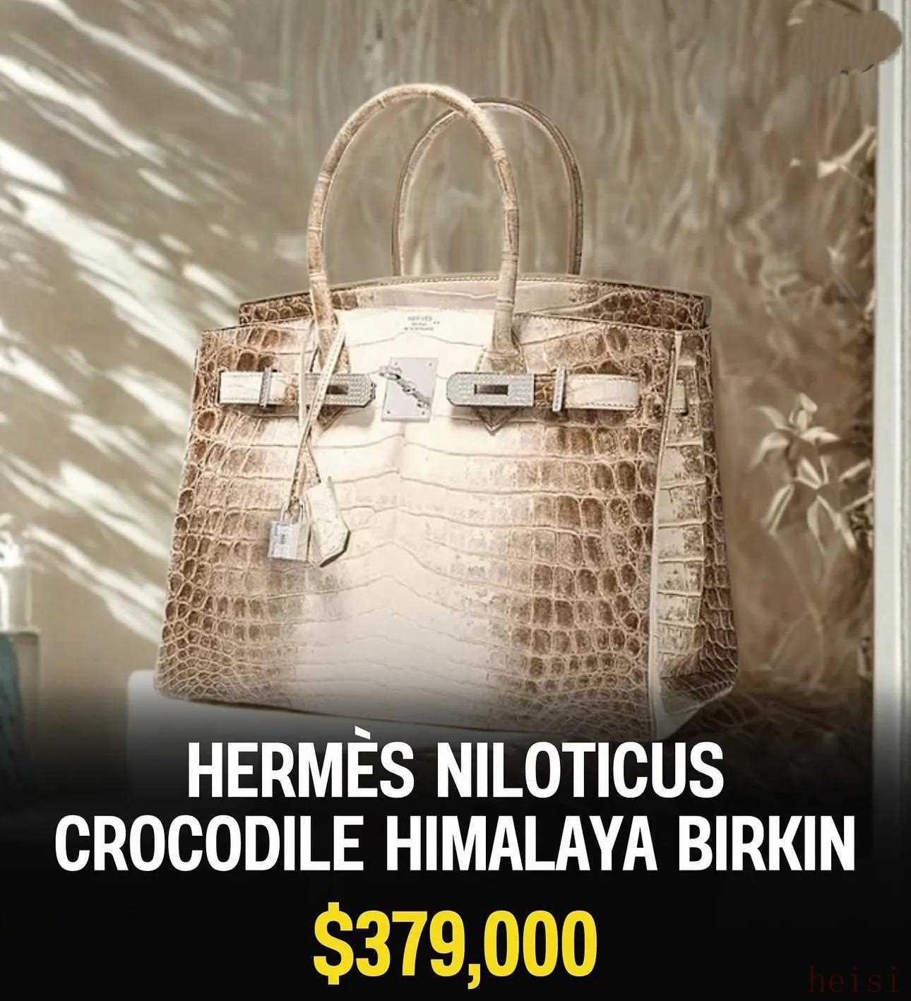 6. Hermès 尼罗鳄鱼皮喜马拉雅铂金包 ($379,000)这款被誉为“包王”的铂金包,采用珍贵的尼罗鳄鱼皮,通过复杂的染色工艺呈现出如同喜马拉雅山脉雪峰般的渐变色。其搭扣通常镶嵌白金钻石,是收藏界公认的最难获得和最具保值性的手袋之一。